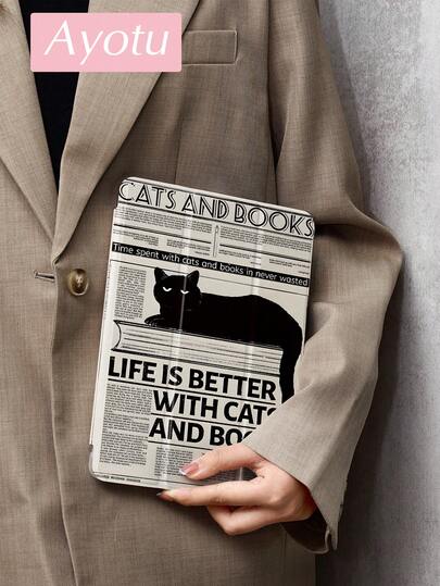 一套报纸猫咪图案平板电脑保护套,兼容 iPad 10 代、iPad 10.2/Mini 6/Mini 7/9.7、Galaxy Tab A9 Plus、Kindle(11 代 - 2024 年)、Kindle Paperwhite(12 代 - 2024 年),时尚简约设计,绝佳节日礼物 - 彩色 - 查看 10
