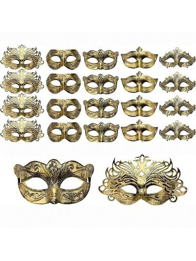 一套20个男女通用的化装舞会面具,威尼斯面具,罗马复古面具,适合圣诞节、狂欢节、生日、宴会、节日派对等场合的服装搭配。 - 彩色 - 查看 6