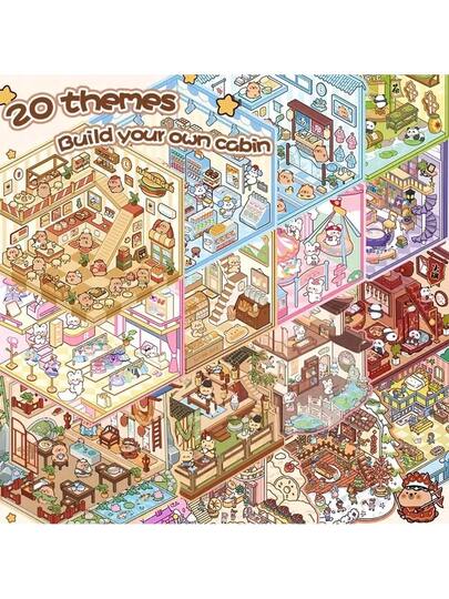 1套大号造景贴纸,20张大号场景合集,多种风格可选,3D立体房屋贴纸,学生减压手工DIY微缩场景贴纸,家庭游戏拼贴图案贴纸,适合家庭聚会小礼物,校园场景建设贴纸 - 彩色 - 查看 1
