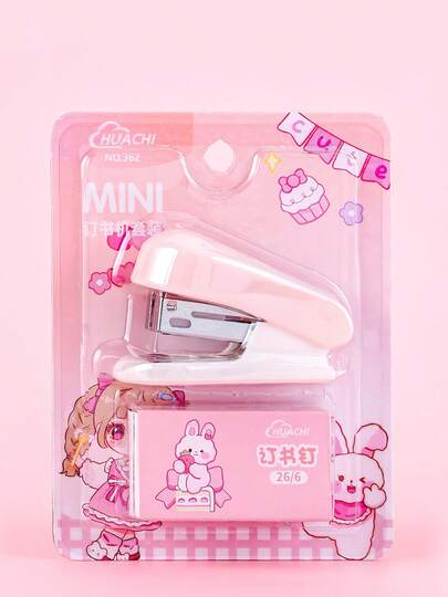 1套马卡龙色迷你订书机,配备订书钉,省力,轻巧,金属装订文具,适用于文件和纸张存储,适合办公室使用,学校用品,返校 - 彩色 - 查看 1