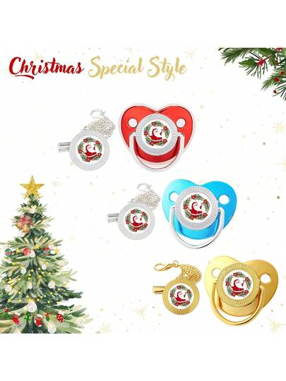一套个性化婴儿安抚奶嘴和奶嘴夹,奢华水钻皇冠硅胶安抚奶嘴,新生儿烫金印花奶嘴夹套装,万圣节和圣诞节礼物