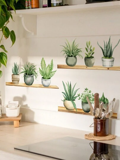 1 套盆栽植物墙贴装饰适用于客厅和厨房背景,贴纸,墙贴花,乙烯基贴花用于家居装饰,春季装饰品让您的家焕然一新,Rama 装饰贴纸厨房装饰 - 彩色 - 查看 6