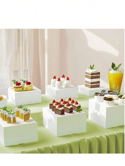 1 套小型亚克力蛋糕架,适用于杯子蛋糕和圆形蛋糕,尺寸:5.5 英寸/6 英寸/6.5 英寸/7 英寸/7.5 英寸/8 英寸,请先选择尺寸 - 3/4/6 件套白色展示架,镂空底部,优雅的甜点展示架,亚克力白色蛋糕架