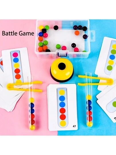 1組實驗管夾球兩人對戰桌遊玩具 24張卡片 40顆珠子拼圖顏色認知教育玩具