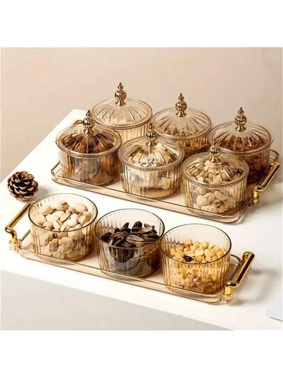 1 套复古优雅零食盘套装,适合家庭使用 - 托盤琥珀圓碟葫蘆頂 - 查看 1