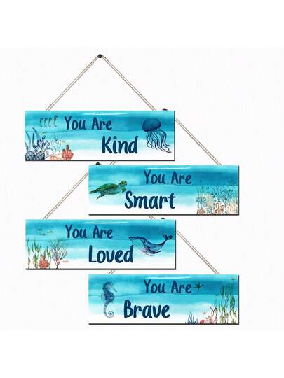 1個木製海底世界設計的牆藝品,藍色海洋和航海主題畫作裝飾,您可以選擇海龜、海星、海豚和珊瑚礁,是臥室和客廳的完美禮物和家居裝飾品 - 彩色 - 查看 6