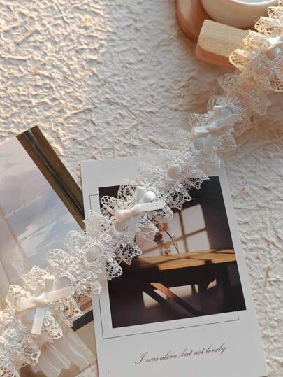 1码*3.8厘米双层蕾丝蝴蝶结带珠和蕾丝边,彩色丝带睫毛蕾丝花边,适用于DIY手工服装、礼盒包装、刺绣、针织用品、缝纫边、装饰蕾丝配件 - 彩色 - 查看 5