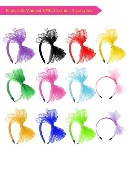 1/3 件 80 年代女式霓虹蕾丝蝴蝶结头带,适合 80 年代复古狂欢节派对角色扮演发饰情人节舞会万圣节 - 多色 - 查看 12