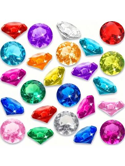 10/100 件混合装海盗宝藏珠宝闪闪发光的钻石巨型亚克力大号假宝石花瓶填充物万圣节多色塑料宝石生日派对桌面散布装饰海盗派对礼物潜水宝石泳池玩具 - 彩色 - 查看 1