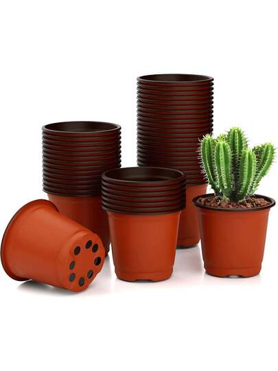 10/20/30/50个植物育苗盆,大型植物育苗盆,带排水孔的塑料花盆,室内外育苗盘,适用于植物、蔬菜、花卉和水果种子 - 棕色 - 查看 10