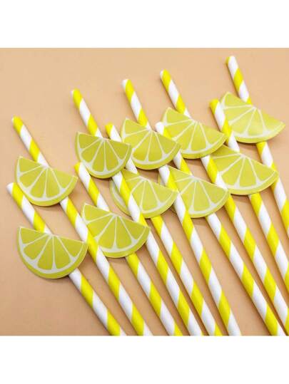 10/20/30/50支/套创意柠檬主题纸质吸管,适用于生日派对、节日庆典、甜点和饮料装饰,一次性 - 黃色 - 查看 12