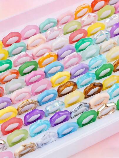 10/20 彩色不规则树脂女士戒指 时尚简约混搭风格手指饰品 日常派对礼物