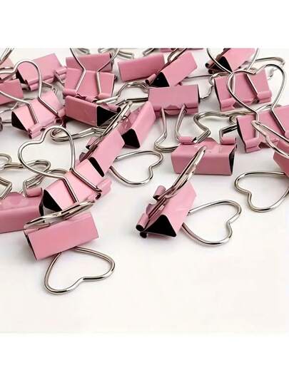 10/20个粉色心形金属办公文件袋,可折叠设计,方便整理办公用品 - 查看 6