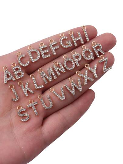 10/26 件时尚水钻锌合金 26 个英文字母吊坠耳环项链手链手机壳拉链饰品 DIY 珠宝配件 - 26個字母吊墜 - 查看 26