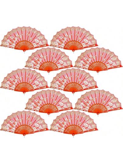10 Pack Folding Fans – Handheld Spanish Style Fans,Bulk Hand Fans For Wedding, Tea Party, Dance, Church,Performance, Home Decorations, Festival, Gift,Red