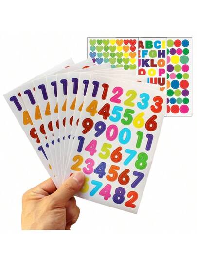 10 张彩色日记涂鸦贴纸剪贴簿相册自粘涂鸦贴纸学生笔记本装饰心形数字字母圆点贴纸数字块贴纸、大号数字贴纸、大号字母贴纸、数字贴纸、数字块、数字块、塑料数字、大号贴纸字母、儿童贴纸卷 - 彩色 - 查看 11