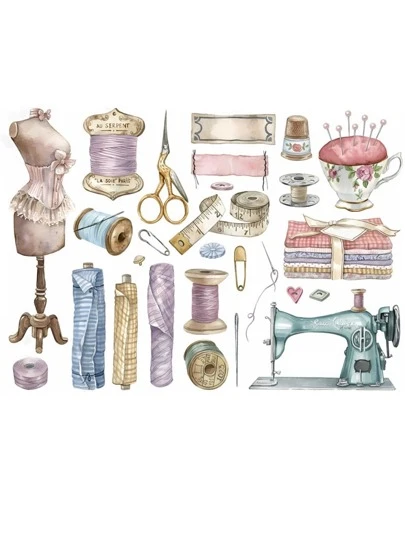 10款復古縫紉貼紙套裝,適用於剪貼簿、日誌、計劃書、相片集、雜誌、diy製卡、裝飾 - 金色 - 查看 1