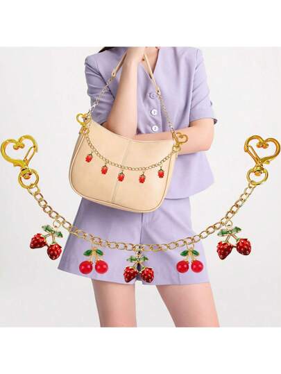 10.6 英寸/27 厘米粉色爱心草莓樱桃钱包包链吊饰包装饰链吊坠装饰包链吊饰配饰女士单肩斜挎包腋下包夏季 - 彩色 - 查看 1