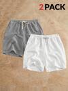 Manfinity VCAY 2件装 男士休闲梭织条纹中腰抽绳直筒短裤男抽绳短裤男夏季短裤男家居短裤男短裤男短裤套装