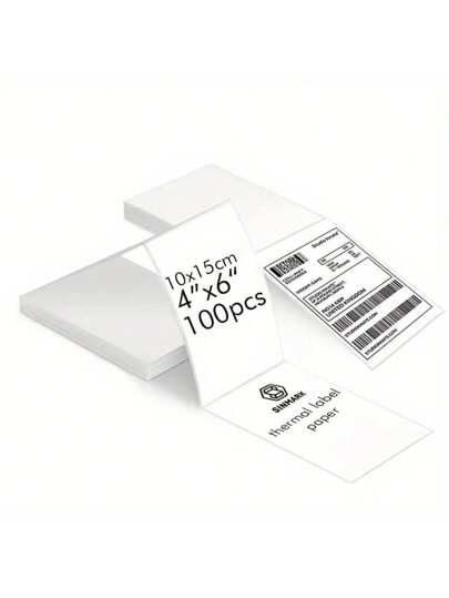100/200 张白色运输标签纸,兼容热敏标签打印机,4 英寸 X 6 英寸热敏标签纸,物流标签纸,学校用品,返校 - 白色 - 查看 6
