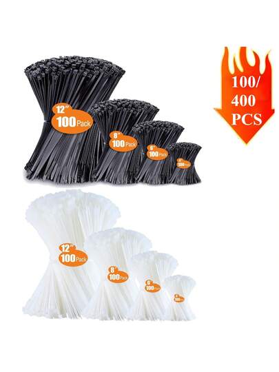 100/400 件装重型扎带套装,尼龙扎带具有防水、防滑、防断裂功能,适用于家庭、办公室和工业电缆管理 - 彩色 - 查看 1