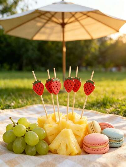 100/50/20支装红色草莓造型竹签,草莓竹签,蛋糕装饰,4.7英寸草莓主题生日派对长签 - 可作开胃菜签、水果签、纸杯蛋糕装饰、三明治签。适用于家庭、婚礼、生日派对、父亲节美食、水果装饰。
