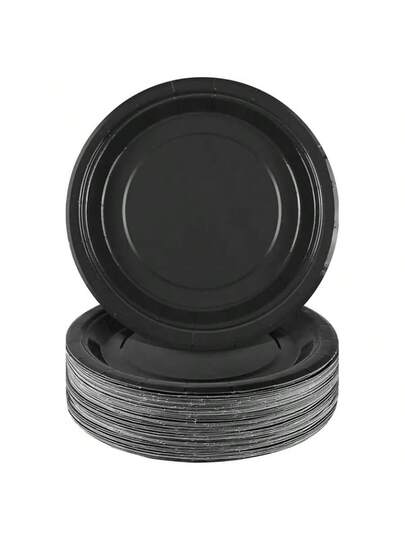 100/60/40/20/10个装 7英寸/9英寸一次性纸盘,加厚防漏,易于清洁,适用于派对、露营、野餐、生日、圣诞节、感恩节、万圣节、复活节、毕业典礼、斋月等场合。 - 黑色 - 查看 1