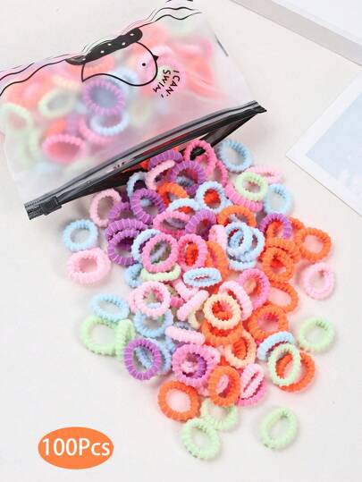 100 件女孩可爱彩色 1 英寸直径发带,新款纹理发绳马尾辫固定器发绳发饰适合日常使用 - 彩色 - 查看 1