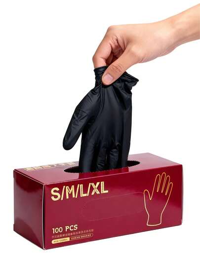 100只装黑色一次性丁腈手套,多用途耐磨防刺工业丁腈手套,厨房家务手套,美容美发手套 - 黑色 - 查看 1