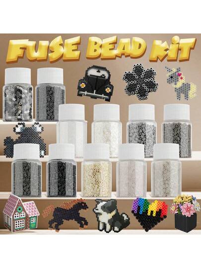 1000颗黑白2.6毫米拼拼豆豆,装在可重复填充的小瓶中,轻巧便携,适合DIY饰品工艺品装饰。 - 熔珠套裝 - 查看 14