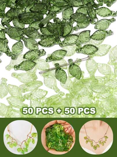 100入組綠色亮片葉子吊墜,可愛的綠色葉子珠子,適用於製作項鍊及耳環等飾品 - 綠色 - 查看 1