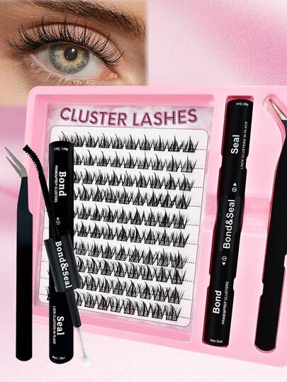 100 件 C 卷曲单根簇状睫毛 11-13 毫米混合分段单根假睫毛套件带睫毛粘合剂和密封睫毛镊子用于簇状睫毛延长 DIY 尖刺单根睫毛延长 - 黑色 - 查看 6