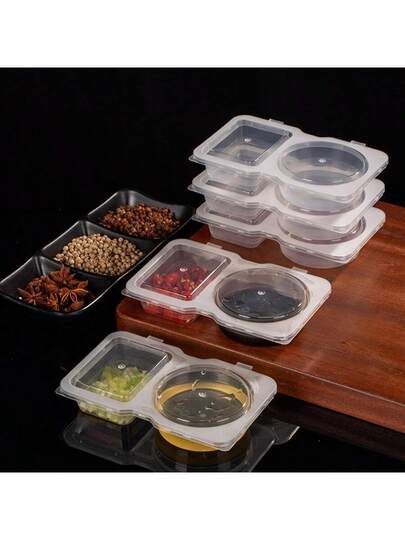 100 个带盖分隔调味品容器,非常适合盛放蘸酱、酱汁和小吃,便携式可重复使用的酱汁杯,适用于调味品、蘸酱、酱汁和小吃 - 無色 - 查看 1