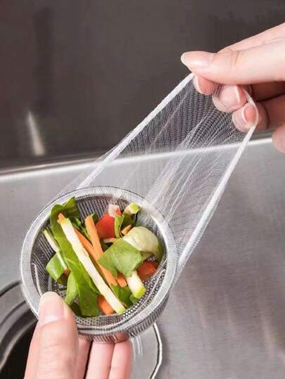 100入組廚房水槽過濾網袋,可拋棄的水槽過濾器袋,水槽網過濾器袋,水槽垃圾過濾網袋,可用於收集廚房食物廢料殘渣垃圾 - 白色 - 查看 7