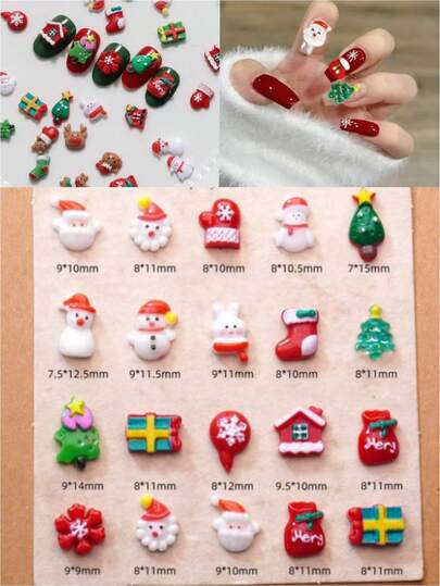100 件/包经典圣诞卡通美甲装饰,3D 圣诞老人、驯鹿、雪花、树脂可爱系列 DIY 配件 - 彩色 - 查看 10