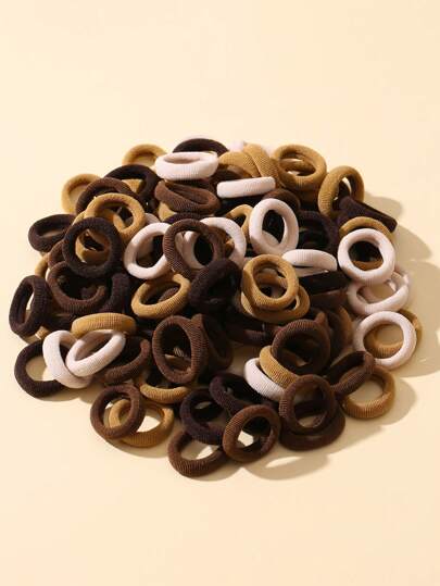 100入組小童拇指大小的彈性髮圈,可愛不傷髮的髮繩 - 棕色 - 查看 1