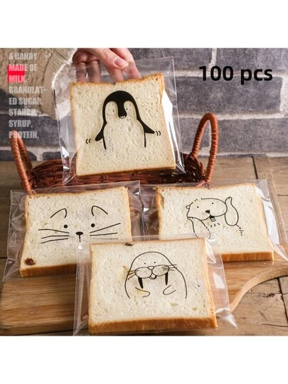 100個自封透明卡通麵包袋用於烘焙切片麵包、吐司、全麥麵包 - 無色 - 查看 4
