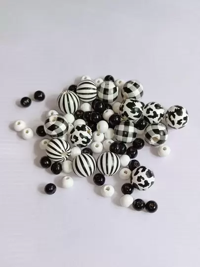 100入組條紋圖案和格紋圖案DIY釘珠 - 黑與白 - 查看 1