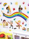 2 件/1 件墙贴 - [儿童彩虹涂鸦] PVC 自粘式可移除墙贴,适用于托儿所、儿童房、游戏室或教室 - 适合任何空间的可爱创意墙面装饰
