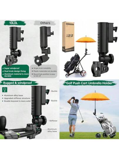 10L0L Heavy Duty Golf Push Cart Umbrella Holder Upgraded Aluminum Base 180 Degrees Adjustable Angle Golf Push Cart HolderUniversal For Stroller/Wheelchair/Bike - 碳纖維皮革黑色 - 查看 1