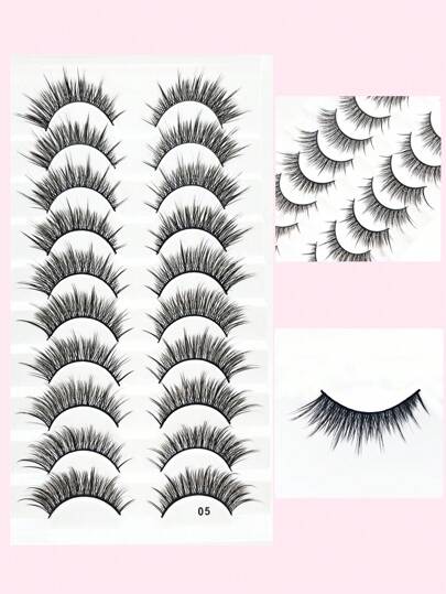 10 对猫眼形尖尾假睫毛超时尚适合女孩美容化妆和派对 - 濃密款 - 查看 2