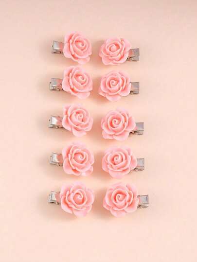 10 件粉色玫瑰发夹,女士小花发夹,女孩优雅发夹,发夹,婚礼发饰,扁平爪夹,发夹,发夹 - 粉色 - 查看 1