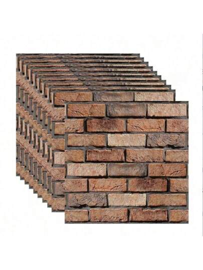 10 片自粘墙贴防水 PVC 砖墙纸可移除墙壁艺术壁画适用于 DIY 家居客厅装饰 - 棕色 - 查看 1