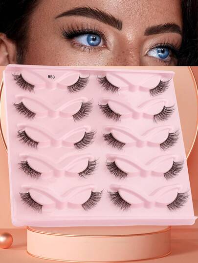 10對眼睫毛,自然長捲、假麝香貂睫毛,可重複使用,增長女士舞會半眼長睫毛 - 眼尾拉長款 - 查看 1