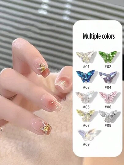 10 件装 3D 美甲水钻水晶蝴蝶,透明超闪亮蝴蝶形指甲水钻指甲 - 彩色 - 查看 3