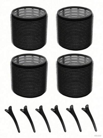 10 件(4 个卷发器和 6 个夹子)巨型卷发器卷发器带夹子的大型卷发器,自握卷发器,适用于长/中/短发(带刘海),DIY 卷发器 2.56 英寸,情人节情侣礼物美发工具,美发套装,美发工具套装,发饰,美发工具 - 黑色 - 查看 10