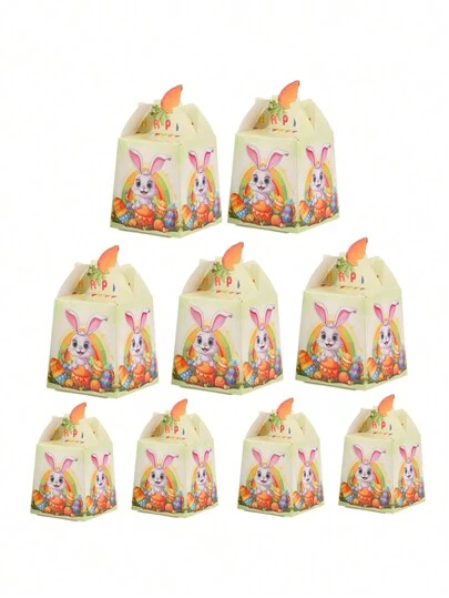 10 件/50 件/包复活节派对礼品盒,兔子和鸡蛋 3D 盒 - 米色 - 查看 9