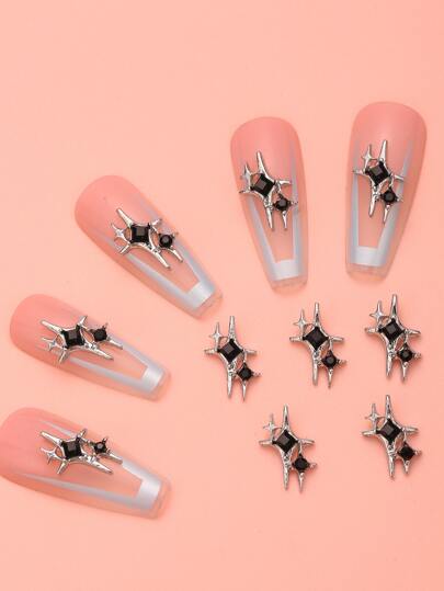 10 件黑色方形星星美甲装饰