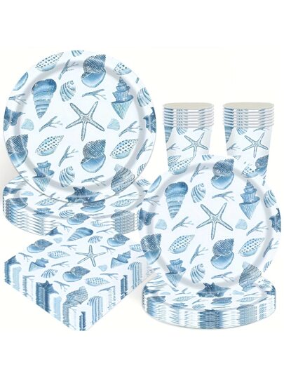 10 件蓝色海星派对用品水下动物贝壳派对用品纸盘杯餐巾餐具套装适合夏季海滩海洋泳池生日一次性餐具海底派对装饰品促销 - 彩色 - 查看 10