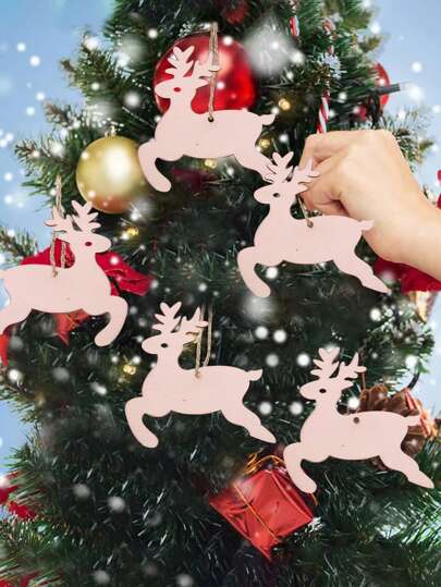 10 件圣诞装饰挂饰木雕工艺品 DIY 乡村风格木制家居装饰礼品配件 - 麋鹿 - 查看 1